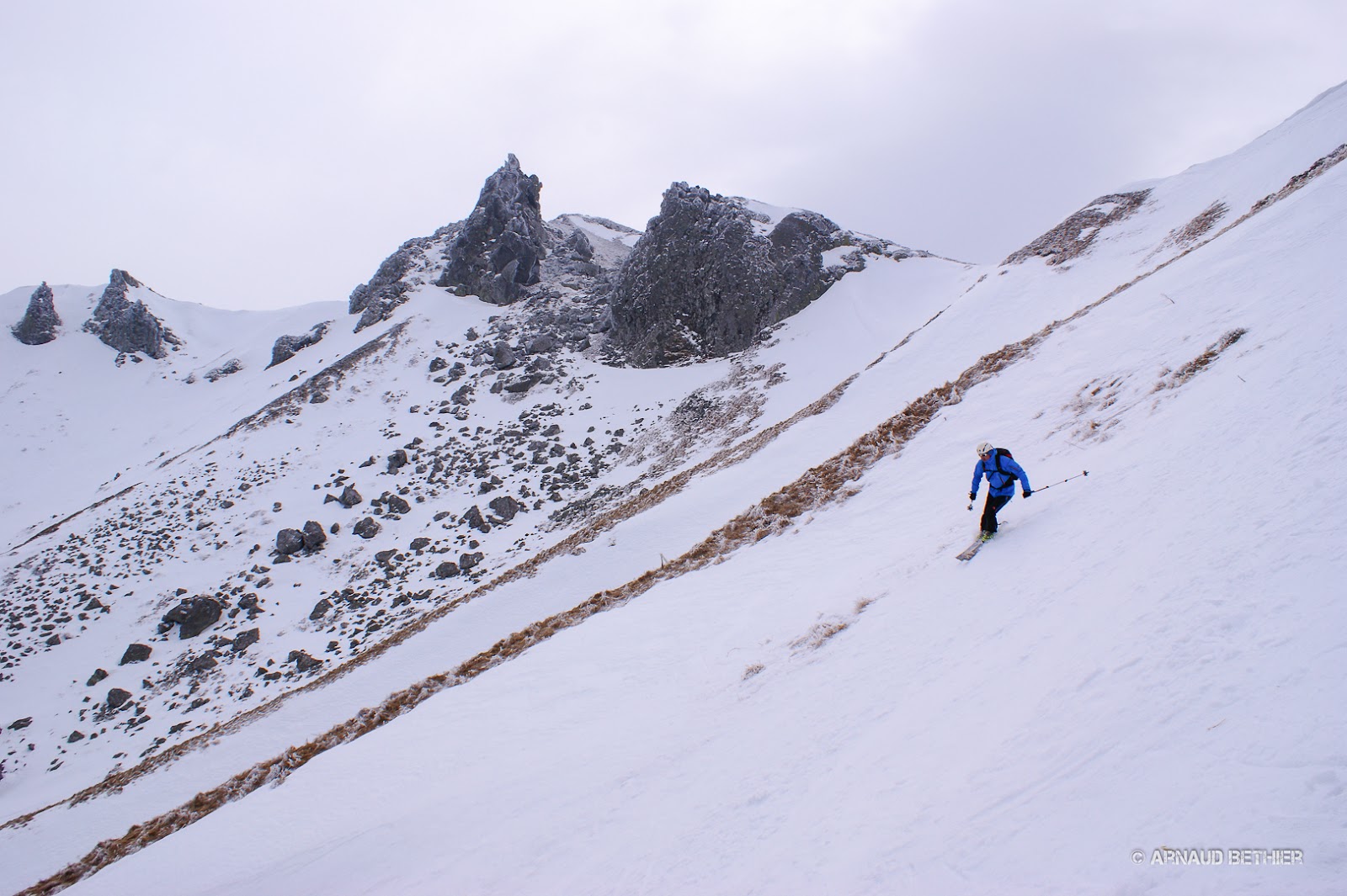 Pour ce second jour de ski avec Richard et Rémi dans le Cantal, nous changeons de secteur allons au niveau du Bataillouse et Peyre Arse.